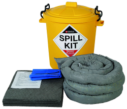 60 litre Spill Kit in a yellow drum with clip-down lid.