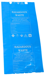 Pack of 10 Premium Blue 140 micron disposal bags with zip ties. Printed with ?HAZARDOUS WASTE? to assist accurate waste disposal.