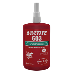 LOCTITE 603 is a high-strength retaining compound. Designed for the bonding of cylindrical fitting parts, especially for sintered bearings and also where consistently clean surfaces cannot be assured. The product cures when confined in the absence of air between close-fitting metal surfaces and prevents loosening and leakage due to shock and vibration. It has a high oil tolerance.